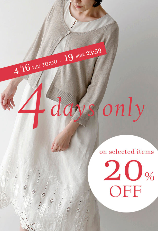 4/16(木)-4/19(日)4Days only on selected items ― 4日間限定20%OFF!! ―