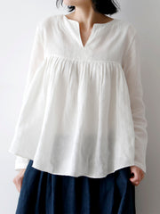 ヨーク切替に寄せたギャザーが繊細なひだをつくり、陰影と立体感を生み出します。