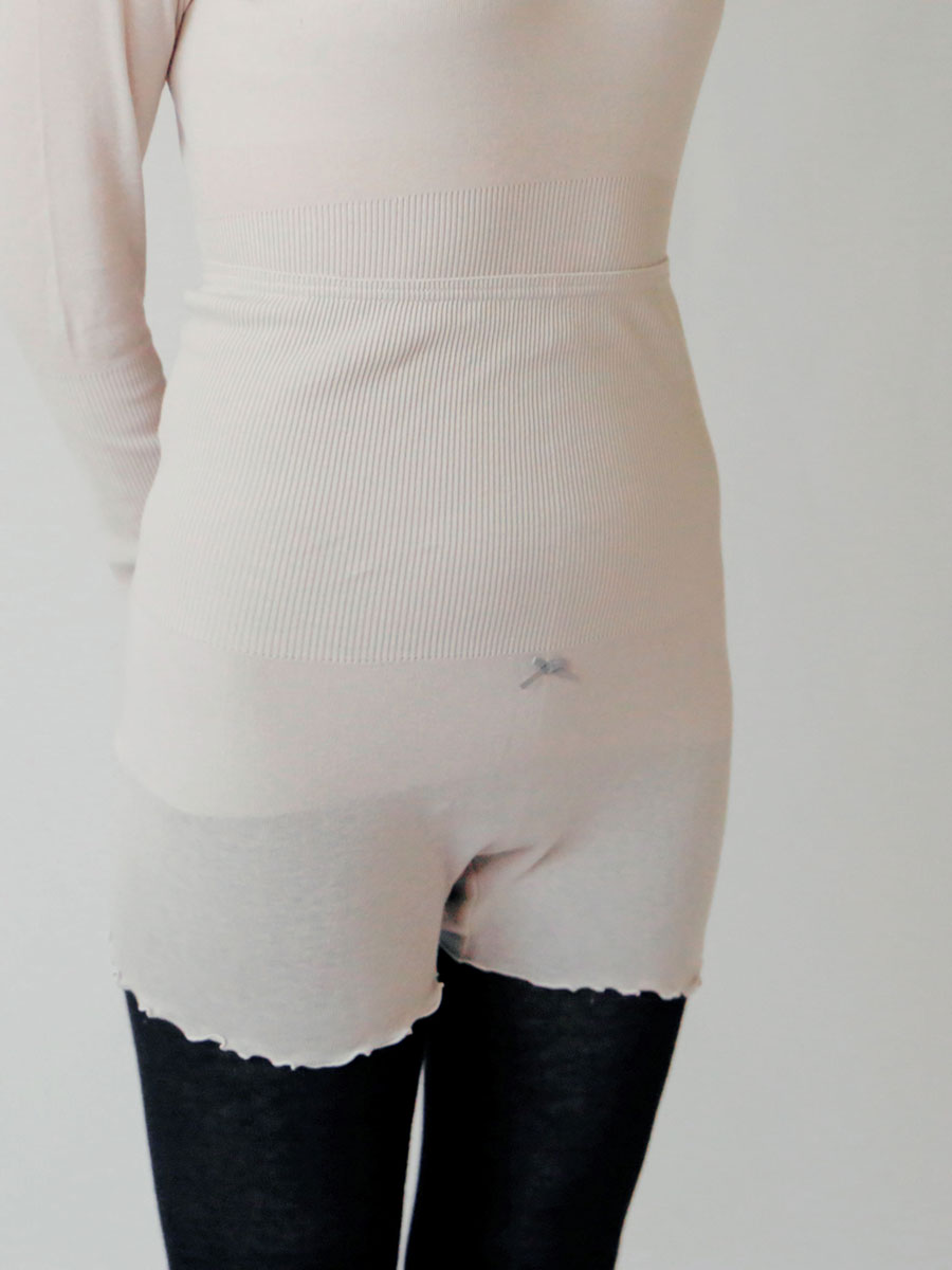 リゼッタがつくりつづけるコットンカシミヤの下着シリーズ。国内に数台しか残っていない機械を使い、すべて国内でつくられています。極細の糸で仕上げた肌着は表にひびかない上、脇に縫い目がなく、素肌に触れてもストレスなく快適に過ごせます。天然素材ならではの極上のやわらかな肌触りで、秋冬の乾燥した肌に吸い付くような温かさです。