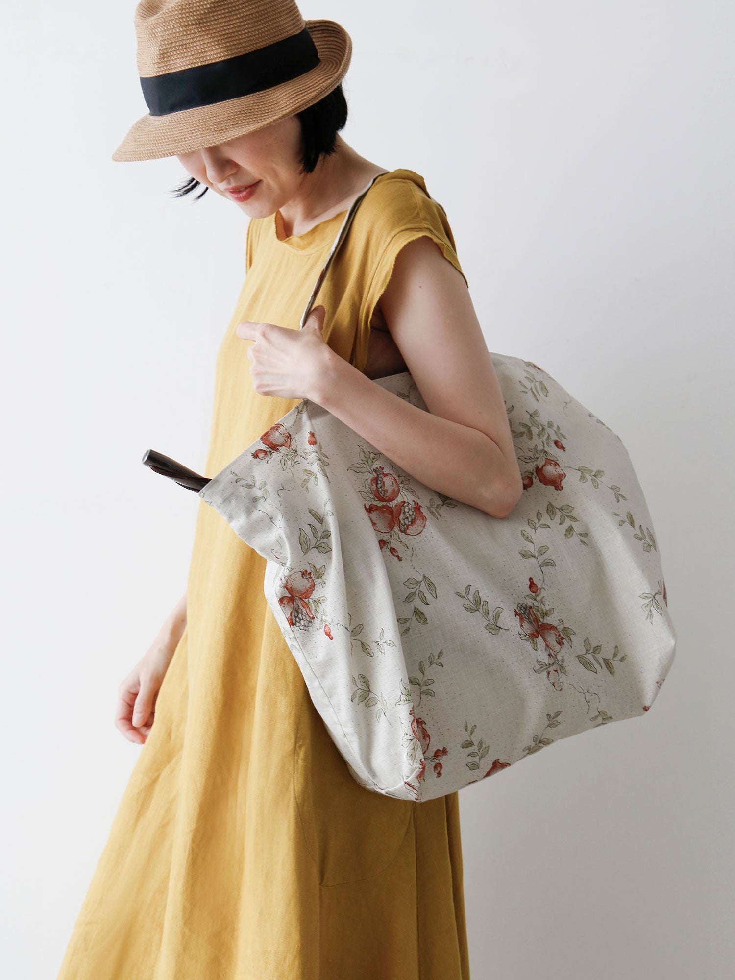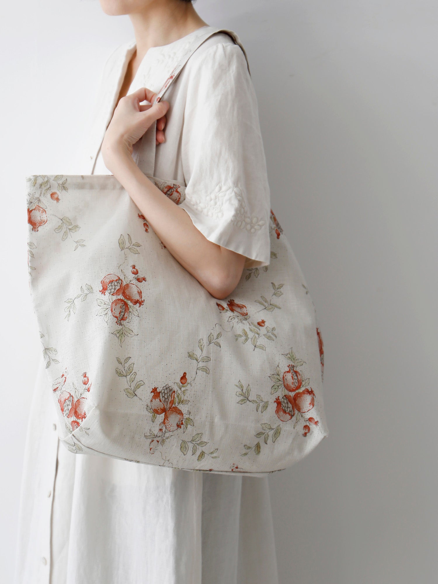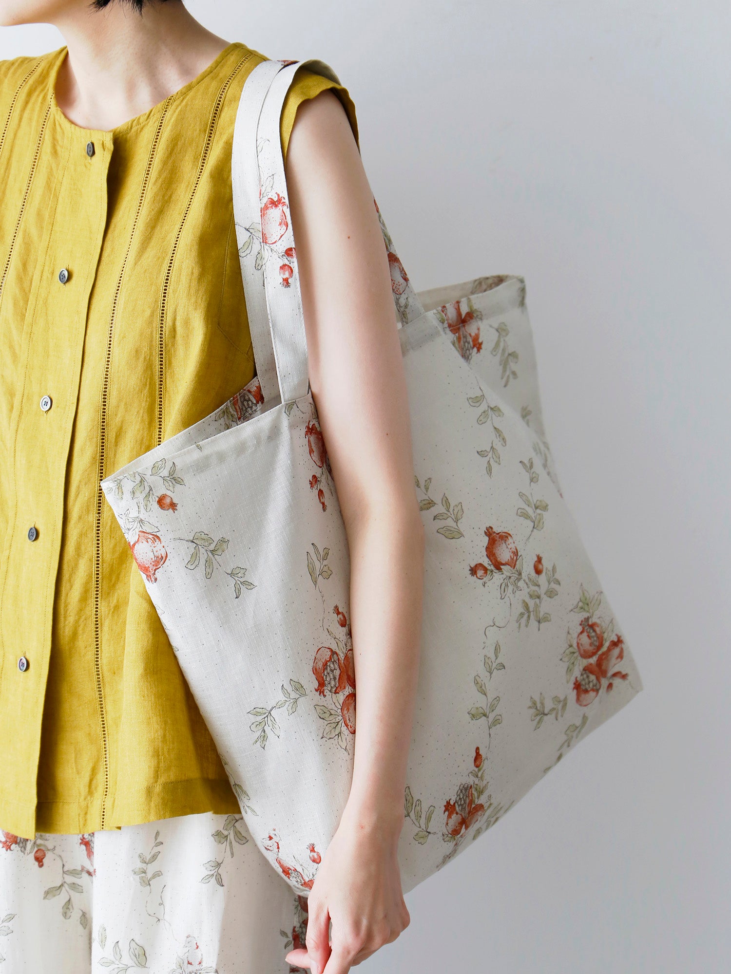 同じ柘榴プリントで仕立てたアイテムもご紹介しています。