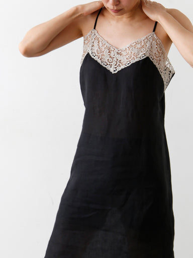 胸元にリバーレースをあしらったベルギーリネンのスリップドレス。 ベルギーリネンのリーディングカンパニー「LIBECO / リベコ」社のつくる生地を使用しています。リネンならではの清涼感はもちろん、着るほどにガーゼのようなやさしい肌あたりに変化するのが特徴。 胸元にはフランス製のリバーレース。な...
