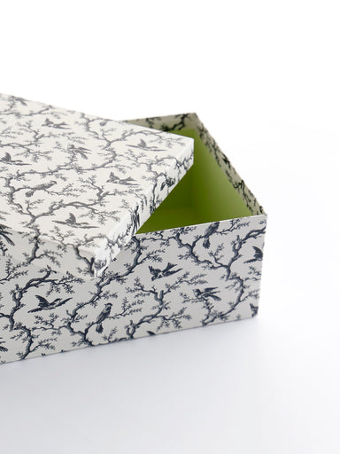 フランスの伝統的な柄「トワル・ド・ジュイ」をイメージした、木々の間を羽ばたく鳥たちのモチーフ。《ロアゾ》は、フランスの古い柄を参考に起こした柄です。優しいアンティークホワイトにブルーの配色が軽やかな印象。生地は1858年創業した老舗リネンウィーバー、リベコ社のベルギーリネンを使用。薄手でやわら...