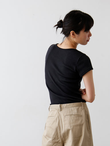 やわらかく、しなやかな手ざわりの別珍ジャケット。ほどよい厚みがありながら、軽やかに羽織れる一枚です。 光のあたり方や見る角度によって、表情が少しずつ変わるのも魅力。上品な艶の中に、上質な素材ならではの奥行きと重厚感が漂います。 首まわりは、ノーカラーですっきりと。タートルネックやブラウスなど、...