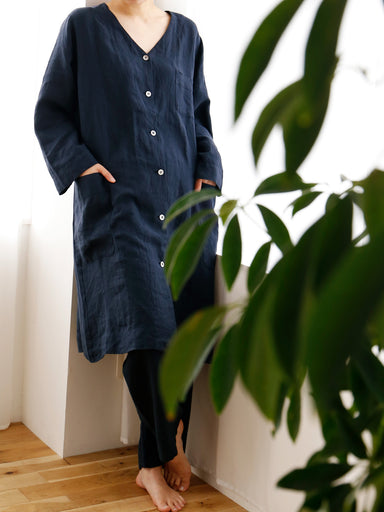 イタリア製の梳毛ウールで仕立てたロングコート。 裾に向かって自然に流れるソフトプリーツが、立ち姿に美しいラインを生み出します。 毛羽立ちのない、さらりとした手ざわり。ウールとは思えないほどのなめらかさが魅力です。 ややトップのチャコールグレーの色合いが落ち着いたトーンで、どんな装いにも自然に馴...