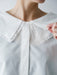 上の衿から覗くように、二枚目にはフランスチュールレースをまわりに這わせています。それ以外の要素はできるだけ削ぎ落とし、襟の表情を引き立てました。