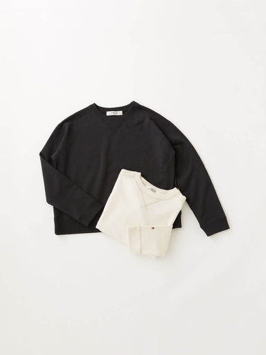 肩と身頃の左右に切り替えを入れてすっきりとした印象に。長めの袖が女性らしい雰囲気。左袖には刺繍を入れてアクセントにしました。