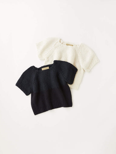 短めの着丈にすっきりとした首周りのデザインは、どんなアイテムとも相性抜群。シャツやブラウス、ワンピースとの重ね着はもちろん、今の時季は一枚で着ても◎