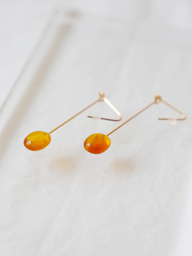 【リゼッタオンラインブティック・リゼッタ日本橋店限定商品】 “UNKEI” あめ玉のロングピアス とろりと甘いハチミツのような天然琥珀のピアス。琥珀は100%植物由来。8500万年前の地層から掘り出される、樹液の化石です。 岩手県久慈地方の坑道から掘り出された琥珀は天然の黄金色。加熱処理や加圧...