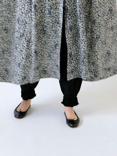 4段のシャーリングゴムと小さなフリルがついた、ありそうでなかったちょうどよいデザインのペチパンツは使い勝手抜群。 後ろポケットもついているので便利に着まわせます。