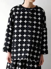 二枚の生地を点でつなぎ合わせるようにして織り上げる、二重織りの技法〈接結ジャカード〉。表と裏、ふたつの層をやわらかく重ねるように仕立てました。触れるとガーゼのようにやわらかく、それでいて透けにくい。二重織りならではの安心感のある着心地も、この生地の魅力です。