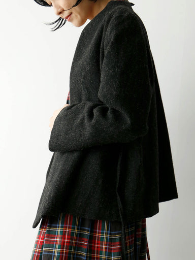 カシミヤ100%のノーカラーコート。 200年以上の歴史をもつ英国の老舗テキスタイルメーカーJoshua Ellis(ジョシュア・エリス)の上質なカシミヤを使用しています。 ふっくらとした起毛感と、まとうだけで感じる軽やかさ。表面には自然な光沢があり、しっとりとした肌ざわりが特徴です。 繊維が...
