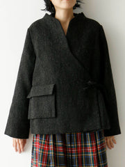 少し生成りがかったやさしいベージュは、どんなアイテムも受け止めてくれる包容力が魅力。一枚ではもちろん、ベストやニットを合わせて印象を変えたり、大きな襟を活かした重ね着もおすすめです。