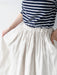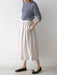 尾州産のリネン100%の生地を使用。ほどよいハリと、さらりと軽やかな風合いが魅力です。アンティークホワイトは、時を重ねたようなやさしい白。まっさらな白よりもやわらかく、着こなしに軽さが出ます。