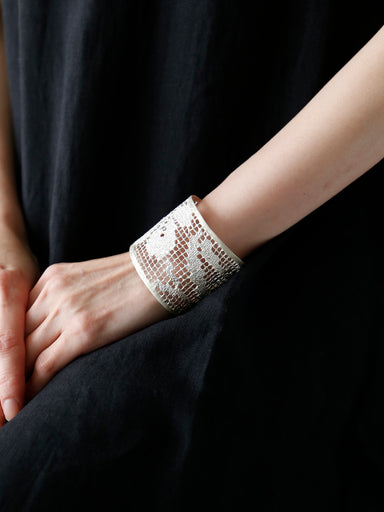 【リゼッタオンラインブティック・リゼッタ二子玉川店限定商品】 1920年代~30年代のフランスで生まれたレースから型を起こし、手作業で製作したRecollection lace(リコレクションレース) シリーズのバングル。アンティークレースそのままの優しい風合いまで再現。1つ1つ手作業で製作...