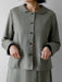 イタリア製のメンズの梳毛のスーツ地で仕立てた、襟越しを少し取ったフラットな丸襟が、フェミニンでクラシックなジャケット。