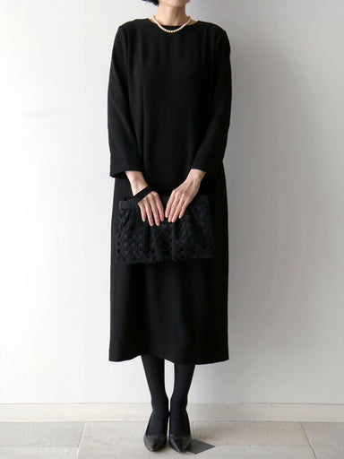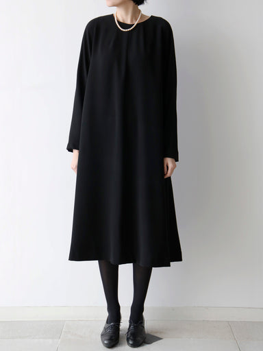 シルエットが美しい上品なワンピース。 ダーツが入った細身の身頃と対照的な、裾に向かって広がる袖が印象的。袖は切り替えになっています。首元にはスリットが入り、より女性らしさを際立たせています。 かばんや靴など、合わせるものを変えればオケージョンでも活躍。一枚ではもちろん、タートルなどを中に着るの...