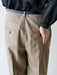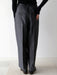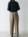 前後にセンタープレスを入れ、すらりとした印象をつくる縦のライン。ゆったりとした腰まわりから、裾にかけてすっきりと細くなるシルエットは、リラックス感の中にも凛とした印象を与えます。穿くだけで、自然に立体感のあるラインが生まれる一本です。