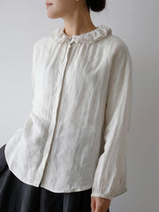 身体のラインを拾わず、肌を優しく包むゆったりとしたシルエット。上質なリネンが生み出す軽やかな風合いで、日差しの下でも涼しく快適に着られます。夏の装いにも取り入れやすい一着です。