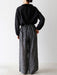 サイズはワンサイズでお作りしました。ウエストはゴムでラフな着心地。共布の紐を通しているため、リボンで細やかなサイズ調整が可能です。結び目がさりげなく映え、装いにアクセントを添えます。