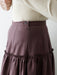 ウエストの下で切り替えたヨークからギャザーを寄せることで、ふんわりと程よく広がるシルエットを保ちながら、トップスをアウトで着てもウエストがもたつかないよう仕立てています。