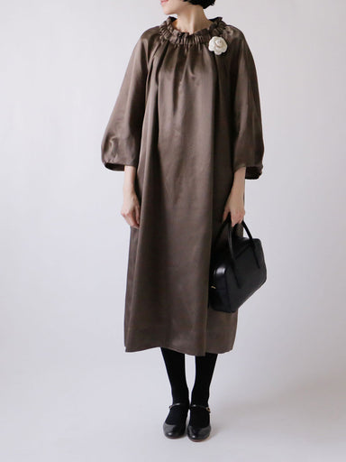 シルエットが美しい上品なワンピース。 ダーツが入った細身の身頃と対照的な、裾に向かって広がる袖が印象的。袖は切り替えになっています。首元にはスリットが入り、より女性らしさを際立たせています。 かばんや靴など、合わせるものを変えればオケージョンでも活躍。一枚ではもちろん、タートルなどを中に着るの...