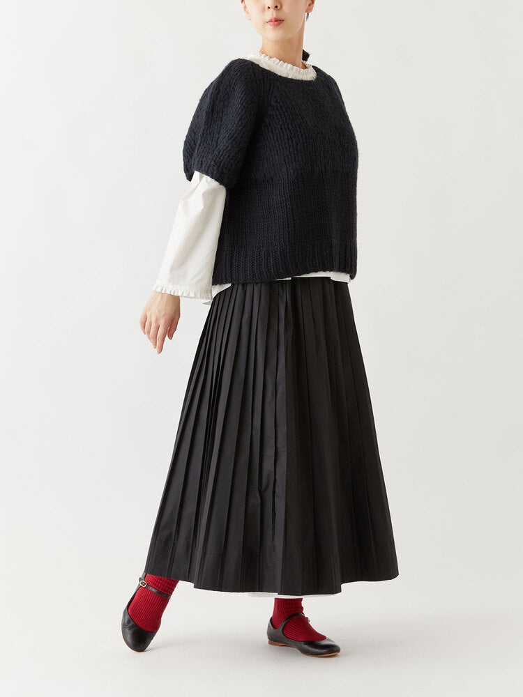 上下で糸の太さを切り替えた、ふっくらとした質感が魅力の半袖ニット。一枚一枚手編みで仕立てています。