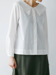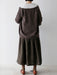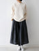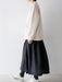ボックスタックを入れ、腰まわりはすっきりと。裾に向かってやわらかく広がり、歩くたび自然に揺れるシルエットです。身体のラインを拾いにくく、軽やかに着られます。