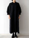 首まわりはすっきりとタックに。胸もとの開きは比翼仕立てで、表からボタンが見えない端正なデザイン。一番上はスプリングホック、その下はボタンで留める仕様です。スモックのようにニットの上に重ねたり、パンツとあわせても。